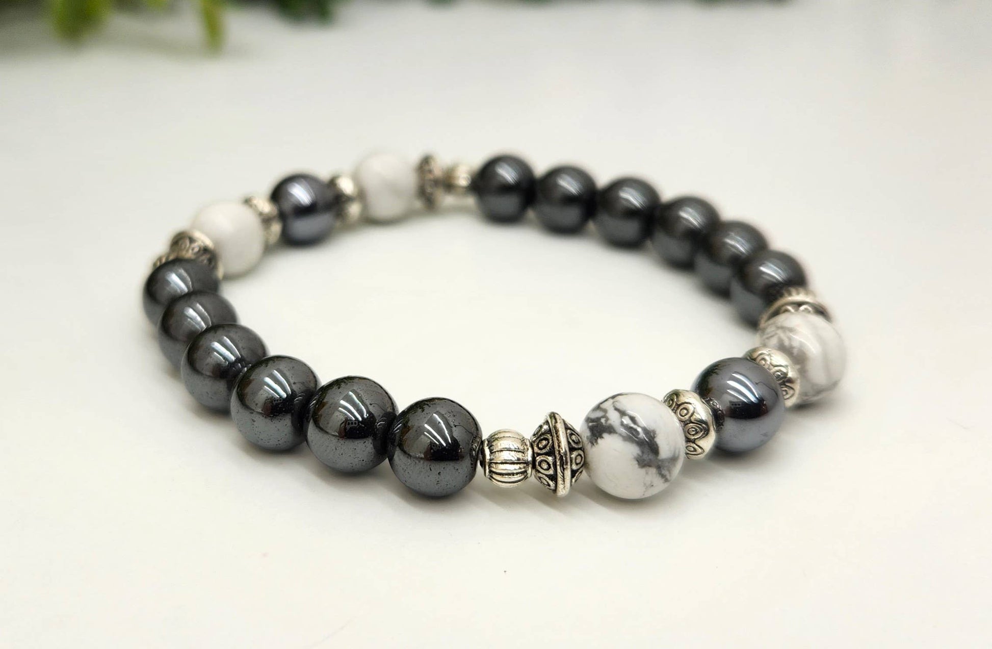 EMPATH PROTECTION- Terahertz,White Howlite,Hematite Bracelet
