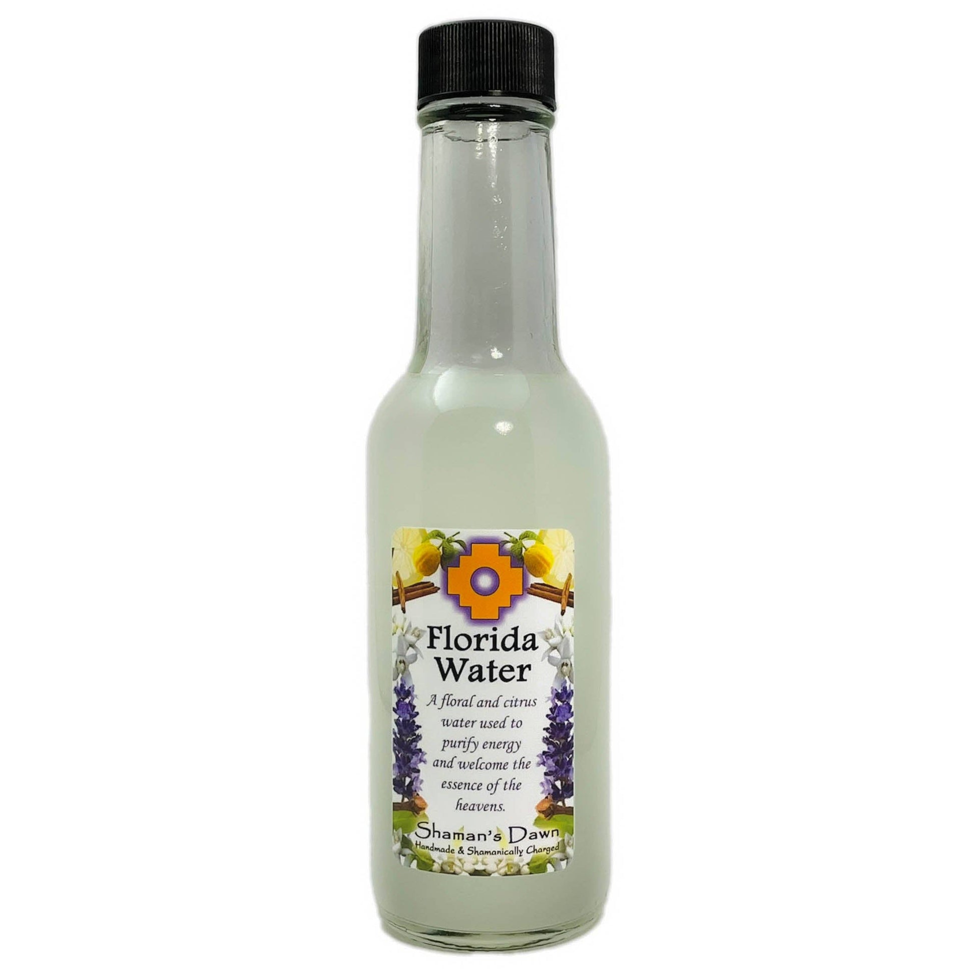 Our Florida Water is made with 100% pure essential oils, filtered water, grain alcohol and is very easy to work with in Shamanic cleansing ceremonies and purification ceremonies.