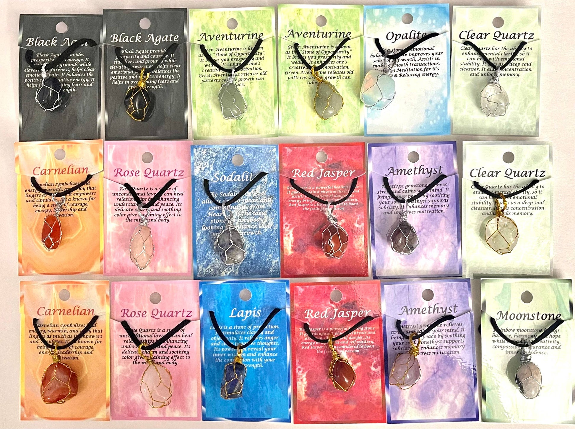 Handmade Wire Wrapped Natural Gemstone Necklace. Amethyst, Rose Quartz, Red Jasper, Carnelian, Green Aventurine, Opalite, Lapis, Sodalite, Rainbow Moonstone Gemstone in Golden and Silver Wire.
