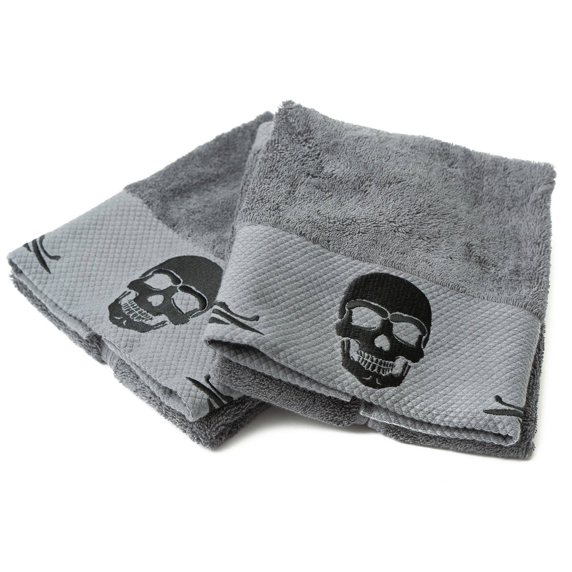 Gothic Skull Hand Towel Set that will transform your bathroom into a glamorous gothic oasis? Yes please! Made from soft cotton, each towel has a diamond weave border embellished with a Calavera skull with elegant embroidery borders.