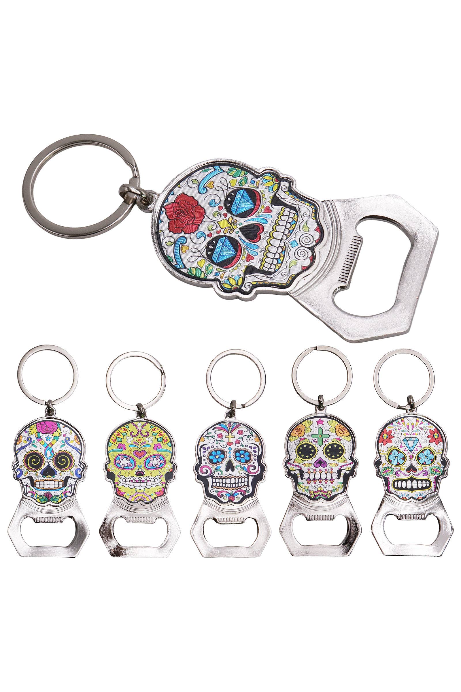 Sugar Skull Engraved Enamel Metal Alloy Bottle Opener Key Chain